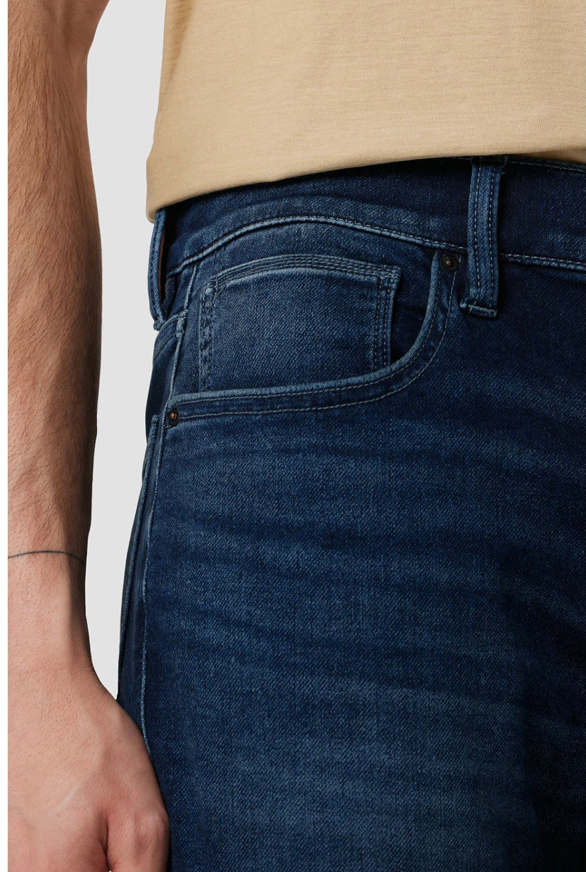 For a snug fit, look no further than the Zack Skinny Jean. Mid-rise, slim through the hip and thigh with a narrow leg. The dark blue Dark Ridge wash is cut from our Dual Denim--a premium, hybrid comfort stretch fabric--with classic five-pocket details.