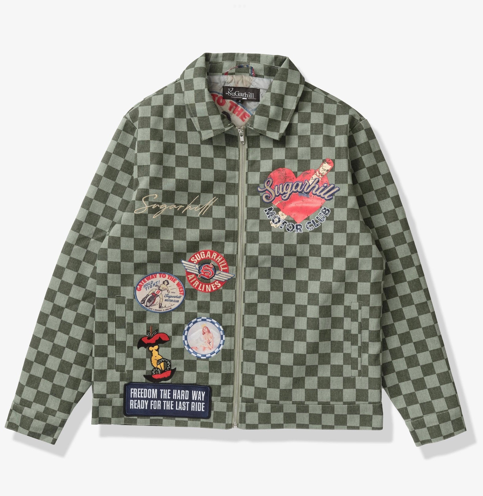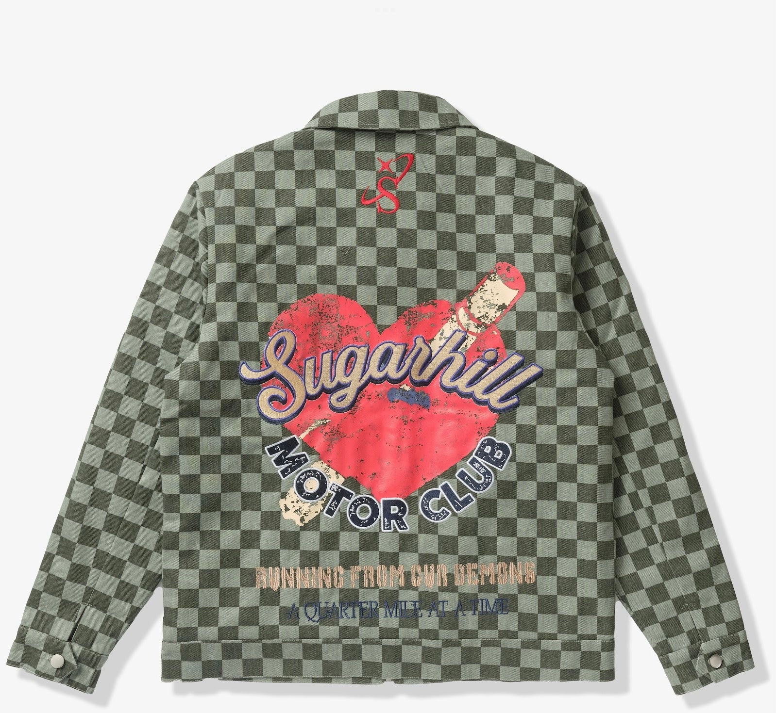 Sugarhill "Motor Club" Denim Trucker Jacket (green checker)